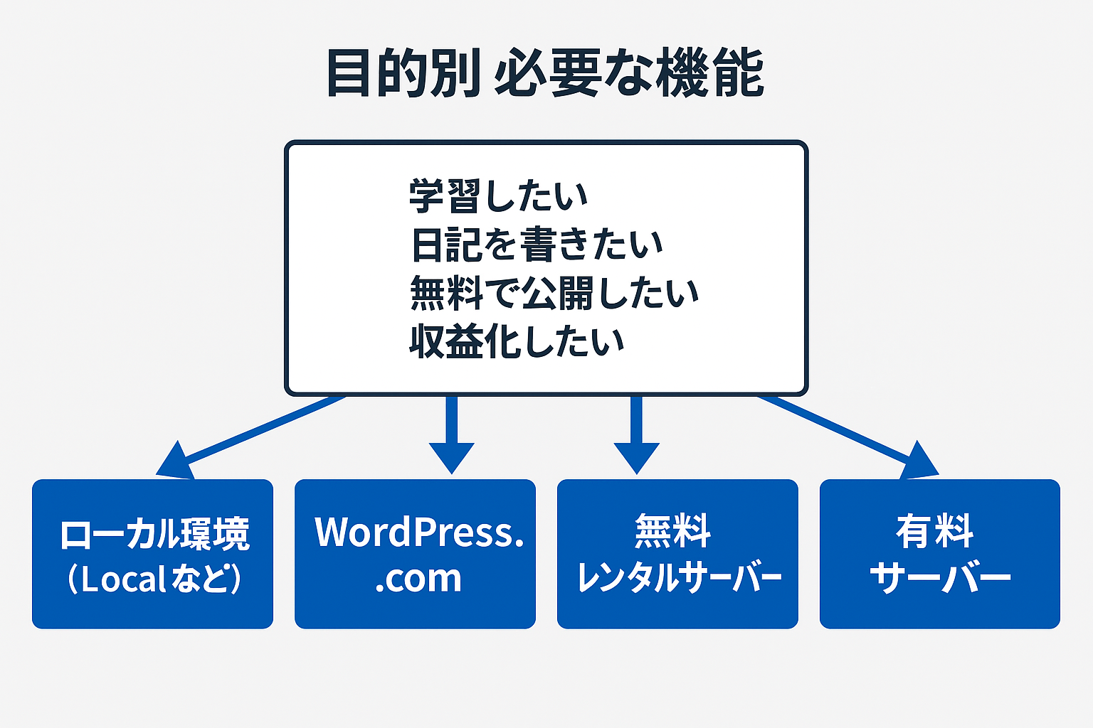 - 収益化したい → 有料サーバー(エックスサーバーなど)(独自ドメイン・高速表示)